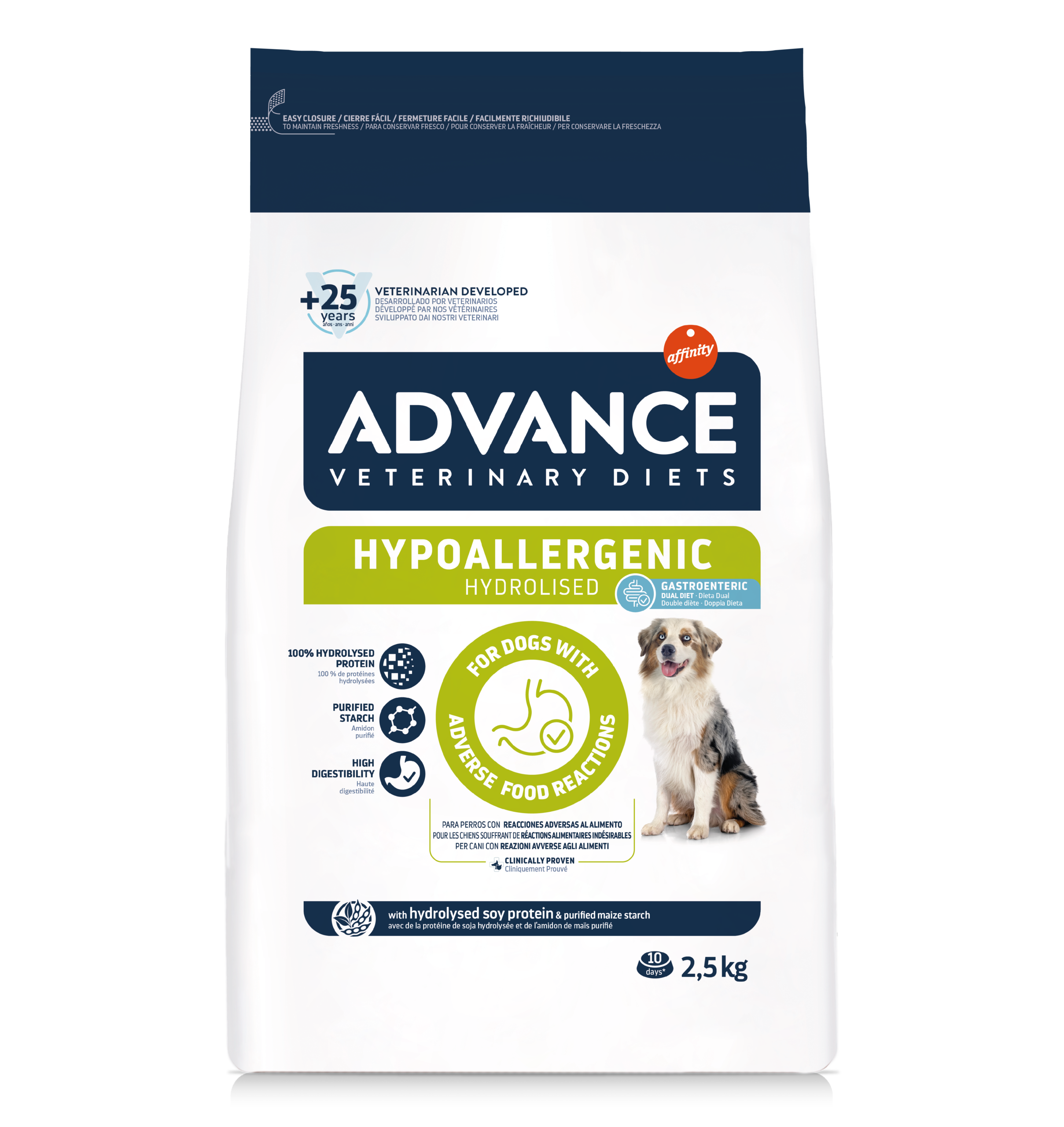 ADVANCE VETERINARY DIETS HYPOALLERGENIC è un alimento dietetico completo per cuccioli e cani adulti, indicato per ridurre le intolleranze a ingredienti e nutrienti, con un’unica fonte selezionata di proteine e un’unica fonte selezionata di carboidrati.