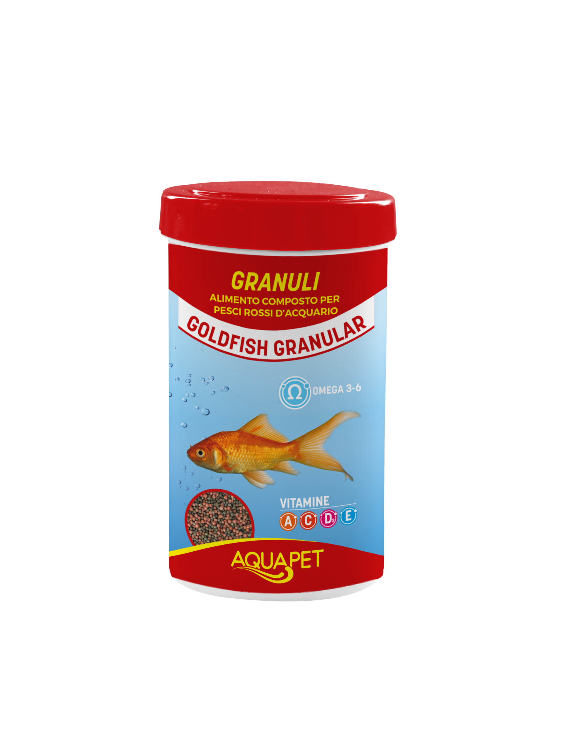 GRANULI per Pesci Rossi 100 ml: è un alimento composto in granuli per tutti i pesci rossi ornamentali di taglia media, particolarmente studiato per alimentare orifiamma, shubunkin ed altri numerosi tipi di carassidi, arricchito con additivi che ravvivano il colore di questi pesci.